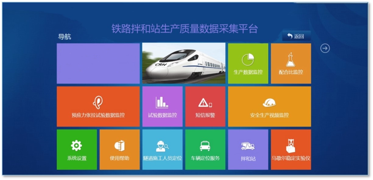 铁路施工质量监控平台主要包含9大功能:拌和站数据动态管控、试验室质量采集、短信预警、隧道施工人员定位、隧道内语音呼叫、车辆定位、安全视频监控、预应力张拉试验数据监控、试验室质量评定。