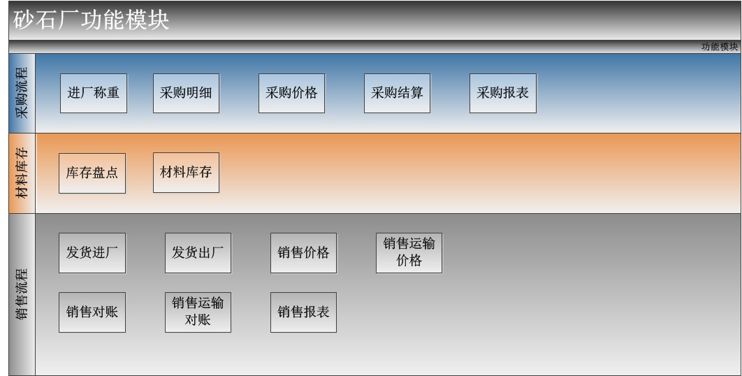 砂石厂管理系统是针对砂石厂采购收料、销售发货、运输沙子、石头或石子的业务特点研制开发的信息化管理系统,可以有效管理沙石厂的采购收料、销售发货、运输费用、原料库存等各项业务,实现对砂石场全面的信息化、智能化管理。