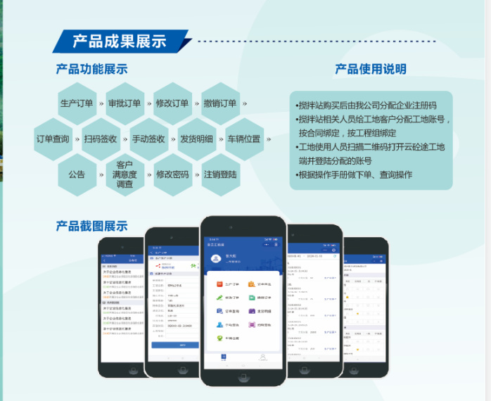 传统模式下,工地都是通过电话或者微信向搅拌站传递要料信息,此种方式存在很多弊端,且出现问题后容易出现纠纷,圣兰工地小程序能够实现工地在线自助下达任务单,然后信息传递至搅拌站,经由搅拌站相关人员审核后即可生效,后续工地可实时查询任务单生产进度、配送进度等,司机到达工地后,工地可通过工地端APP实现扫码签收(或手动签收),同时工地也可每天查询收料台账。